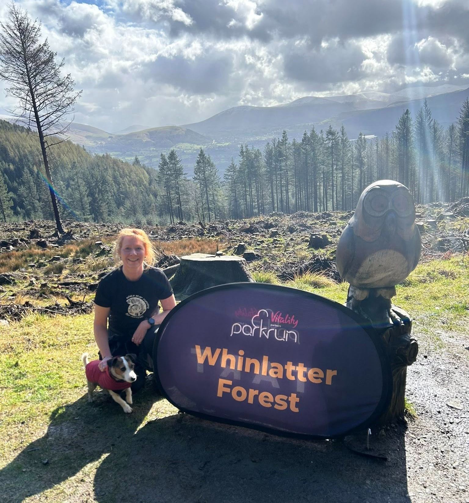 From Kate: Whinlatter Parkrun this morning, the UK’s highest elevation gain parkrun. It was absolutely stunning. A one lap course through the woods with a loop towards the end. It’s up, up, up and more up but you are rewarded with views of Derwentwater Lake and the surrounding fells, which today were snow capped, making it even more beautiful. I’ve never seen so many runners stopping to take photos. You do get an ace downhill but it isn’t until the end! A favourite parkrun for sure.