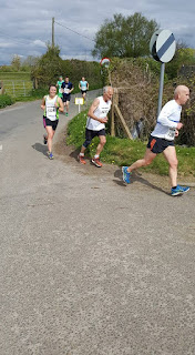 Good Friday saw the Championship Race Kilmington Kanter with a few Green and Whites taking part. This in from Matt:It was a slightly cloudy morning with stratocumulus building from the west as the YTRRC Awesome Eight gathered at the rather picturesque village of Kilmington for the annual running of the Kanter. Seven miles, two hills, one bog, one railway bridge, one lap of the school field and a shed load of banter. The hooter blasted and we all set off with the sound of Jo Henley's phone ringing in our ears (she was "on call" so was hot-desking all the way round - it's SO important she has two phones!). Corinne Hawkins felt she had been lied to "a flat 10k" was NOT the correct description! Meanwhile, Kev Doherty led the way up the first hill with Matt puffing like he'd been on a pub run the night before! The other side of the hill looked good - it was downhill - but the marshalls were already setting up the return loop bollards (a word later used by Adam Hawkins to describe how he felt afterwards). The riverside fields should have been nice running, but the long grass was slippery for those in road shoes (it's not like we're experienced runners after all!). The return hill beckoned and the welcome sight of slurry-laden tractors gladdened our hearts. Matt was creeping closer to an unaware Kev, while Daz Swithenbank was beginning to struggle with a knee injury. but since the marshall could only offer water, not the needed carry home, he ploughed on and toughed it out. Richard "another 10k done" Dodge was merrily sauntering around enjoying the sun. Finally the last downhill towards the village and Matt took advantage of his recent mudbath running experience and swept Kev aside to the congratulatory sound of "You F.. and I didn't catch the rest". Emma Machen tactically used Corinne to pace carefully round the course and was among the rest of us who were pleased to find it was NOT a lap of the playing field upon return, but straight into the finish!!! They'd sold out of cakes by the time we all finished so we'll be members of YTRRC for many years to come to try and improve our speed! Results at ... here