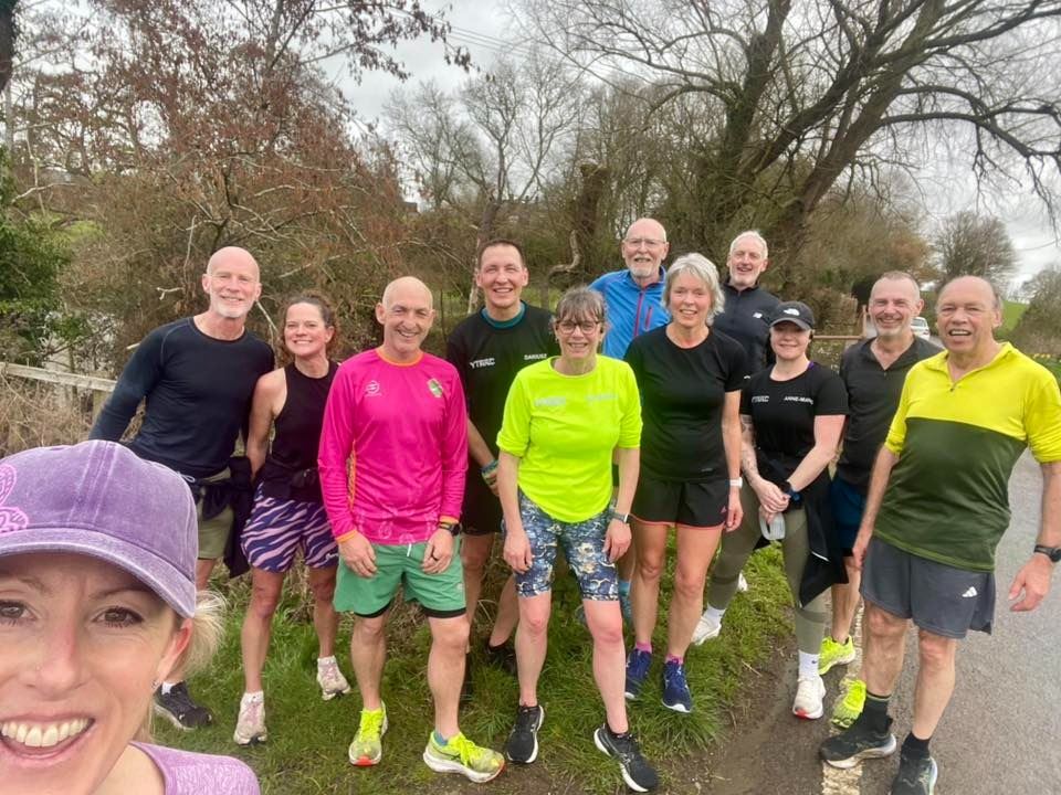 From Tim: The Saturday Cavity trays run took us 10 k of the Yeovil half route through Montycute and then Balls Hill. Andy Hale joined us just after the photo. The weather was perfect and we all went for breakfast afterwards.