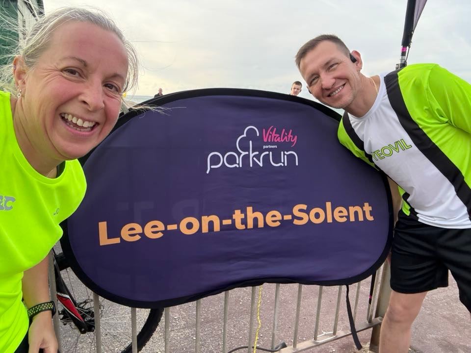 From Jo: Ahead of tomorrow’s Great South Run, Da Riush Broniszewski & I smashed out a very fast Lee on the Solent parkrun. Although a nice flat course, the wind challenged us!!