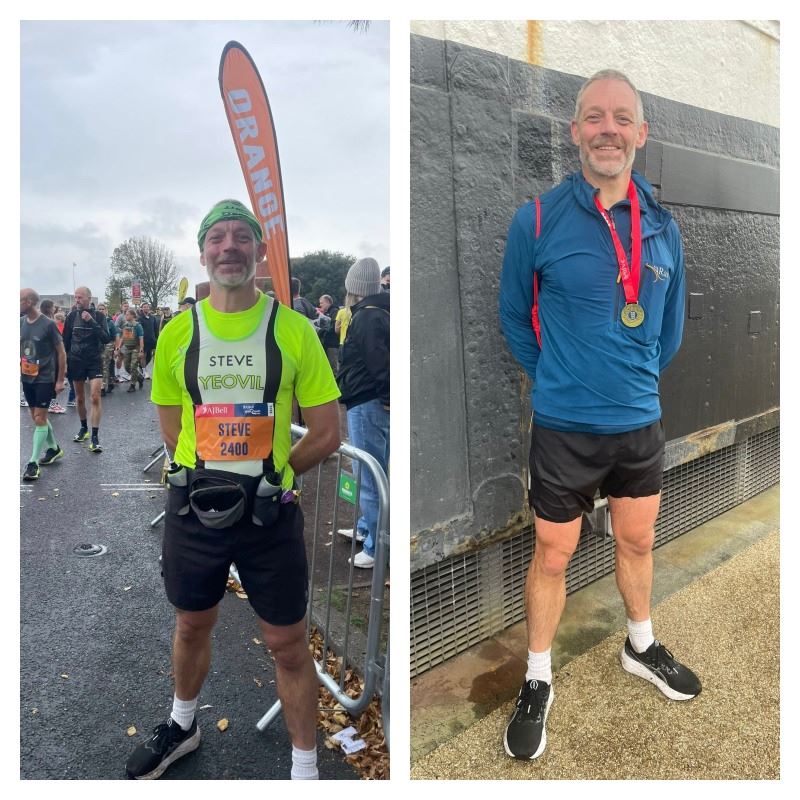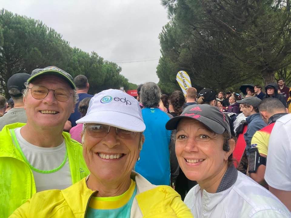 From Sandra: 3 Yeovil contingents at The Great South in the wind and rain today. ( sooo cold afterwards!! ). Please do note the sign above us stating “fast pace runners”. We have never been within striking distant of such a sign before . Well done you guys. I did see another Yeovil top pass by as i was having a moment with shoe and sock off and standing on an ice pack to cool down my bursitis that was on fire .