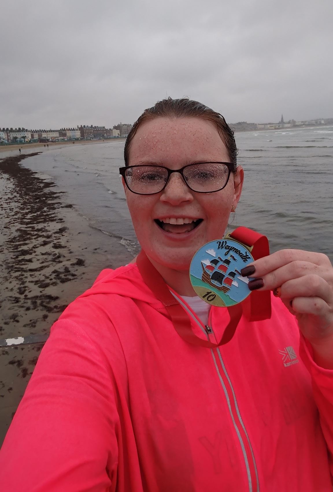 From Margarita: Weymouth 10 miler - absolutely mad, I'd already done my 10 miler for my hat so thought I'd do this one for fun. The weather was not fun.