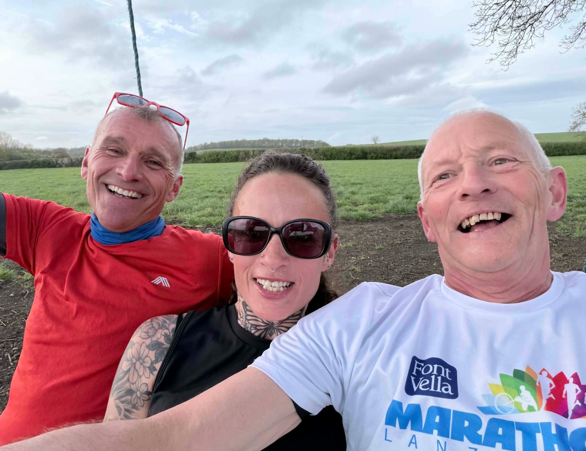 From Lindsay: Sooooo after a quickie park run yesterday I thought what can I do today whilst @freyasaunders_11 is out celebrating her dad's birthday, oh yeah I'll nip to Devon and do another marathon lol. Spring Challenge day 2 marathon no 27 done beautiful day for it and so lovely watching my first 100th marathon presentation, well done Baz, great achievement.