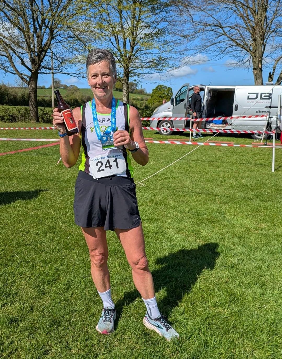 From Margarita: A few of us went over to do the Ilminster 10km today in the sunshine. A tough hill to start followed by a few more hills with a nice downhill back into Ilminster. A lovely medal, cider and goody bag.