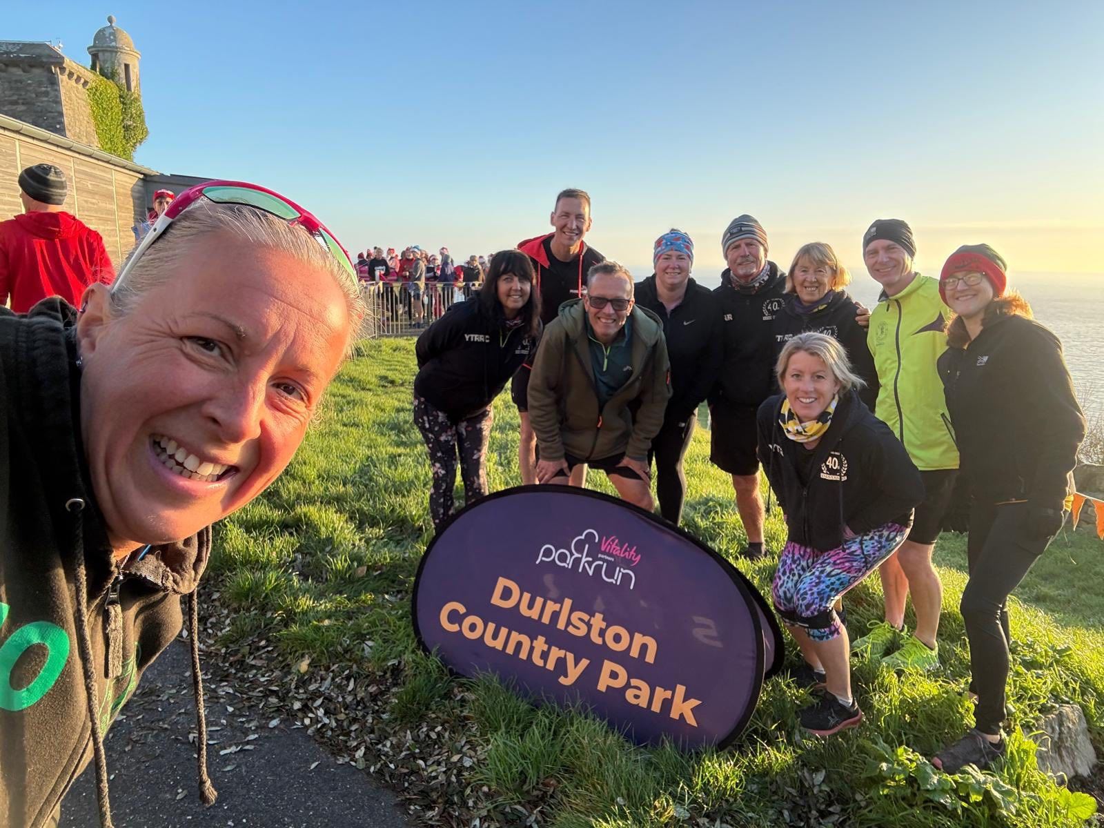 From Helen: Lovely sunny morning to celebrate Rob’s 300th parkrun at Durlston Country Park…of course he had to choose the hilliest parkrun out there but as we were lucky with the weather we didn’t mind as the views made up for the hard work…although dad my not be so agreeing with that statement! We all enjoyed a nice brekki at Dobbies Garden Centre on route home.