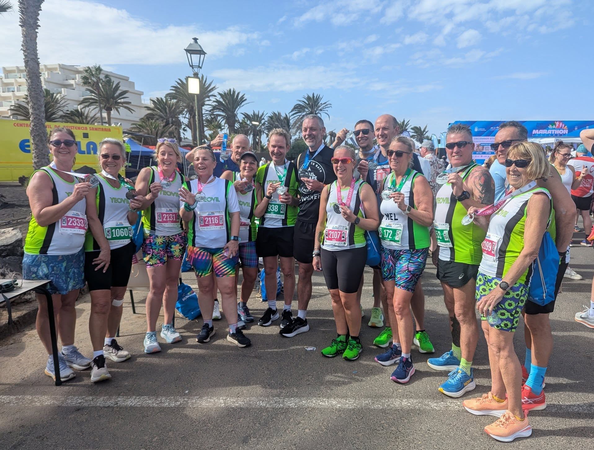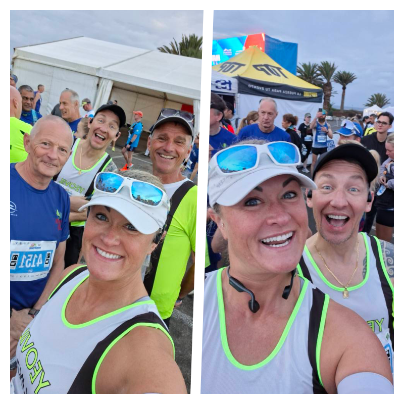 From Lindsay: Lanzarote Marathon 2025 done and No 12 in the bag for me this year. Challenge complete. This was a nice out and back, slightly undulating route,passing right through where the planes land. We started off strong and kept in front of the 4.15 pacer right up until after half way but then the sick feeling hit us both, despite taking on plenty of water, electrolytes and melon along the course. That's when the 4.15 pacer went passed us. Then Steve @rabbitspawsw had cramp at 20 miles which made the last 10k very slow but we did what we could to get to the finish. We were passed and cheered on by @johenley @bustaboy5 @lindamembury who were doing the half marathon and Fez and Gary doing the 10k. We made it over the finish line in 4hrs 53 where we were greeted with free food, beer and a 10 min massage. Would definitely do this one again x