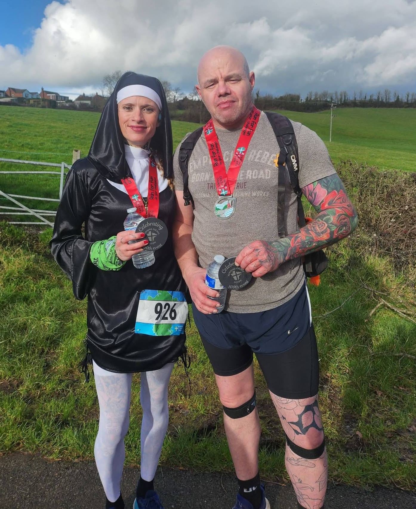From Ann: Well what can I say about the double race weekend. I booked us a caravan to stay in the totally wrong location took us 2 and a half hours to get there to only realise oops we are to far so half eleven ar night we set of back home get in for 1am and back out the house at 6am to say the weekend was already a long one was an understatement. So 2 hours sleep and of I set to do an ultra for day 1 and martin my other half done his first half since leaving the army. Day 2 was a hard day in a lot of pain and really didn't think I could do it but I kept on going not a fast time but still completed a marathon on day 2. Day 1 was Devon running events 100th event so cake and an extra prize of a slate coaster.