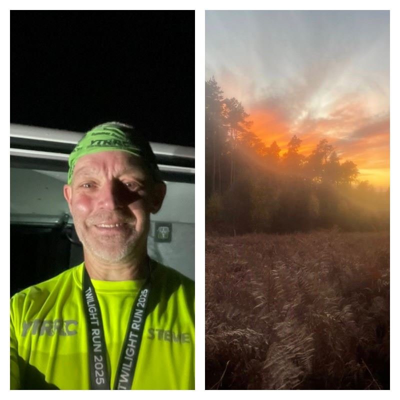 From Steve: A hilly 2 lap course (1100 ft of climbing over 10k!)……so soon warmed up and rosey cheeks on the autumn night. A few zombies were hiding in the forest and jumped out during the race just to add a bit of jeopardy - if the hills didn’t elevate the heart rate then the zombies definitely did! I went wrong at the end of the first lap which cost me 1st in age group and I was 2nd a minute behind ….doh (17/118). Good fun and something a little bit different. Nice medal.