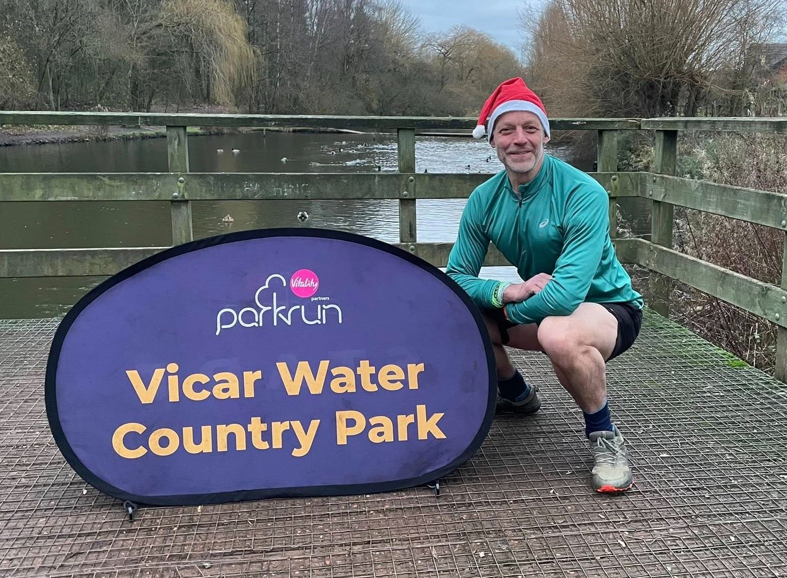 From Steve: Merry Christmas to one and all.Along with 285 other runners I partook in the festive edition of Vicar Water country park parkrun this morning (and got my “V”). A really friendly 2 lap run through the forest and around lakes. There was a killer of a hill where crampons and ropes would have helped. (15/286 and 1st in age). Now for the festivities.