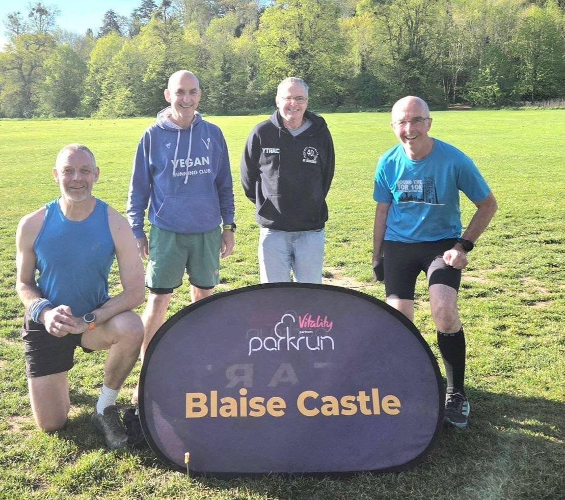 From Kev: A boys road trip to Blaise Castle parkrun (Bristol). A 2 and a bit lap event around Blaise Castle estate , a mixture of grass, trail and tarmac and twists & turns through a wooded section with various undulations. Whipper snapper Steve Lye kindly offered to chaperone the old guys , first assisting Trevor Strelley with his seat belt , then google maps for me and then car door duties for Richard Dodge . Steve was first in AG with 20:44 ,Trevor Strelley and myself more leisurely. finally we headed to Clevedon for Breakfast and coffee on seafront. Thoroughly brilliant morning in great company. Lovely to see Deborah Stanfield and Dave Stanfield too.