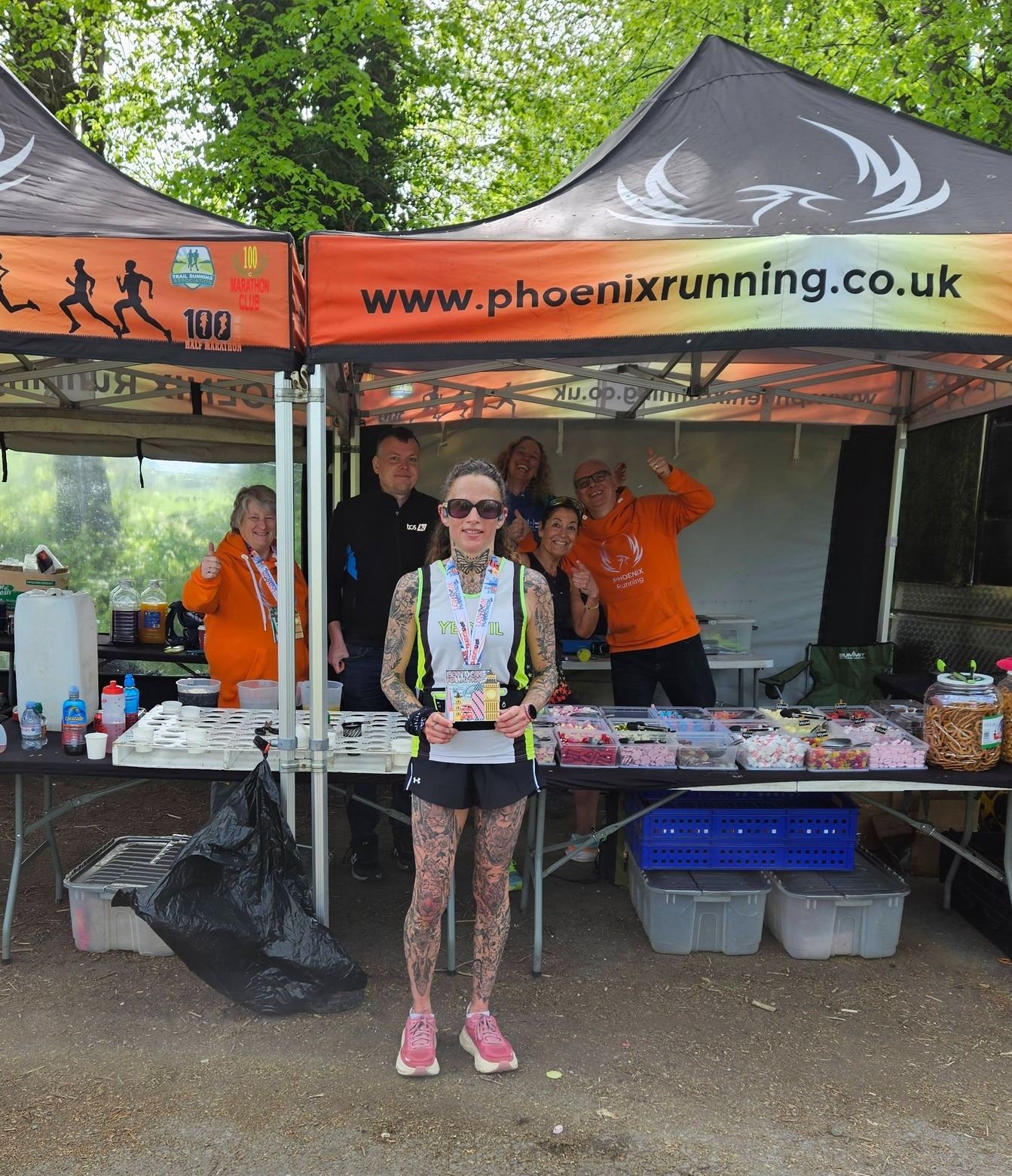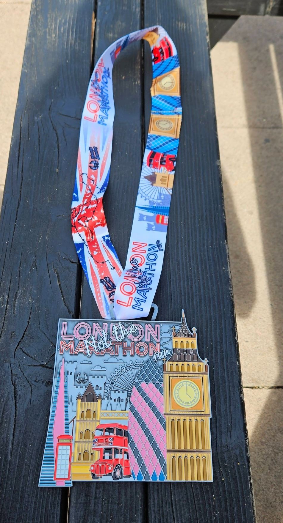 From Ann: Early start up for 3am to get ready and travel down to walton on thames to do another great phenix running event not the london marathon run so of course it would be rude to not do a marathon distance . Lovely course out and back with a nice breeze was going great until the dreaded toilet que but had to be done so lost 10 minutes but never mind . Great event run by a great team and amazing medal. Ran into jc as well he was also doing a marathon distance.