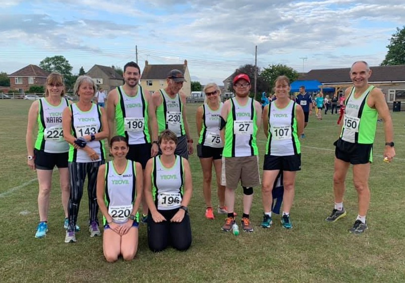 From Donna: There were about 10 of us from the club who started off from Somerton Rec. We proceeded to go down a hill where the traffic was managed. We went out on to a fairly flat field, water and jelly babies were provided at 5k mark. On way back we had to run up a long hill, our group captain Graham Still was there to encourage us to the end. Cloudy but still a warm evening, good race.