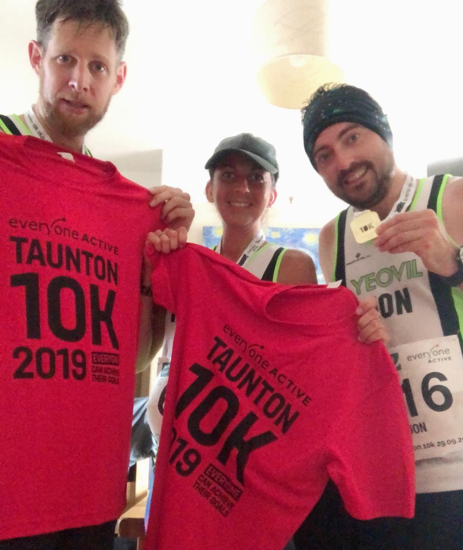 From Holli: A soggy Taunton 10k completed. Only 4 of us from Yeovil. Dave Stanfield got 1st Yeovil man, followed by Casper Harvey in 2nd and Jon Foxon in 3rd. I was first (and only) Yeovil lady 😂 👊