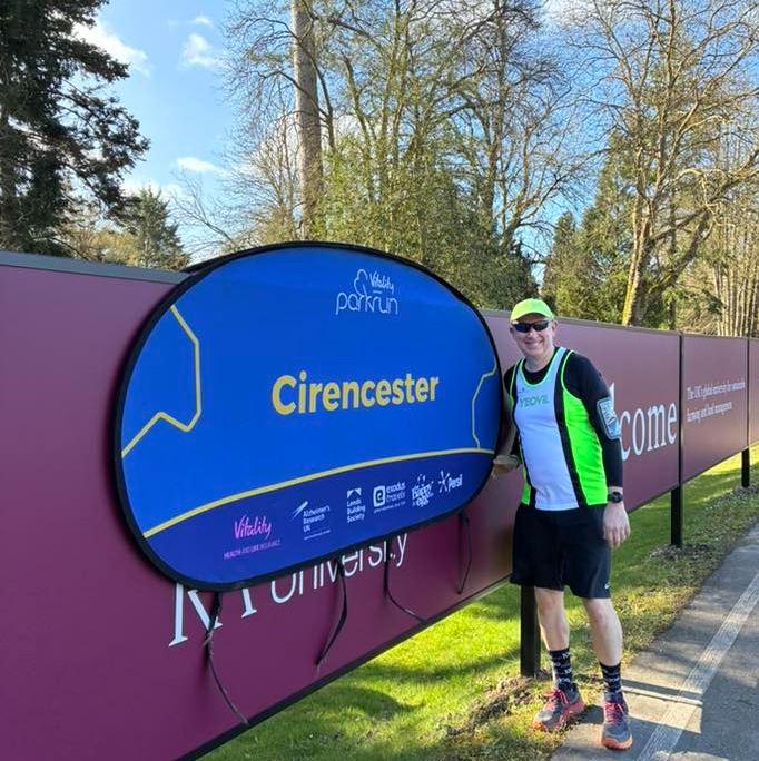 From Gav: Parkrun Tourist at Cirencester this morning, with Daughters & their partners. 3 laps all on grass round the Royal Agricultural University grounds. Staying at the lakes nearby, Howells Mere, Somerford Keynes for Mum’s 80th birthday family celebration weekend.